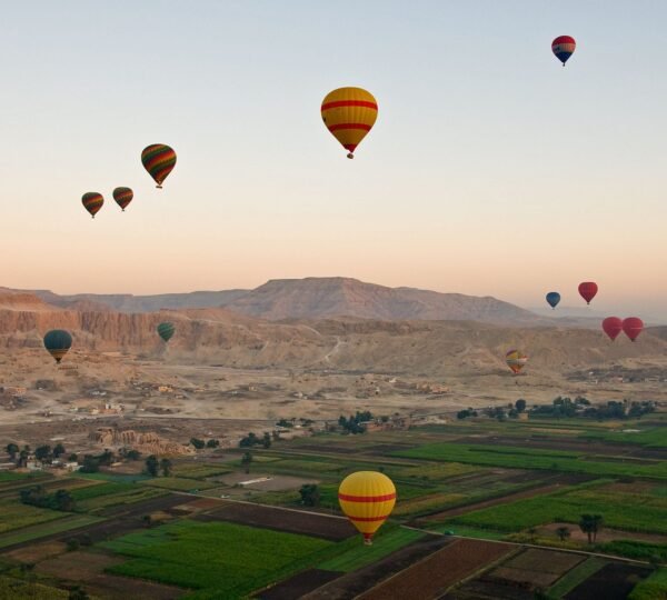 Embark on a magical journey as you drift through the skies in a hot air balloon over Luxor. This is not just a trip; it’s an ethereal experience, offering breathtaking views of the East and West valleys of Luxor. Gaze upon the vast Egyptian countryside and the timeless temples of ancient Egypt from thousands of feet above, making your Luxor visit truly unforgettable.