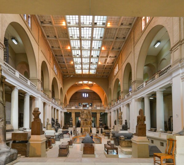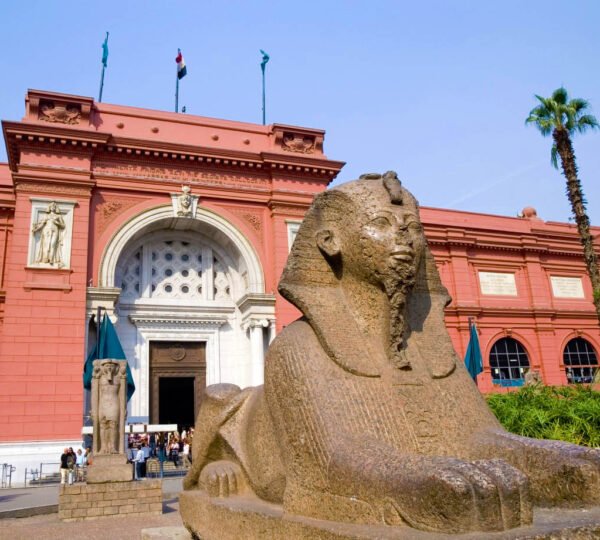 - Move to visit the Museum of Egyptian Antiquities: known commonly as the Egyptian Museum or the Cairo Museum. It is home to an extensive collection of ancient Egyptian antiquities. It has 120,000 items, with a representative amount on display and the remainder in storerooms. Built in 1901 by the Italian construction company, Garozzo-Zaffarani, to a design by the French architect Marcel Dourgnon, the edifice is one of the largest museums in the region, you can visit The Royal mummies’ room (additional cost).